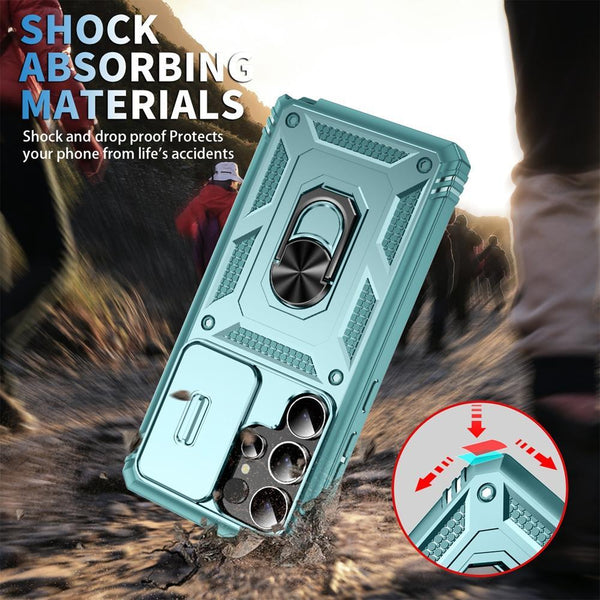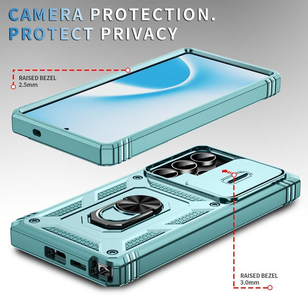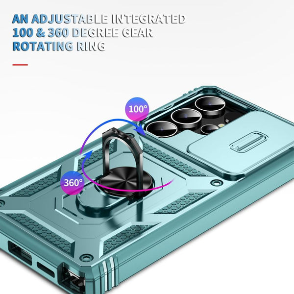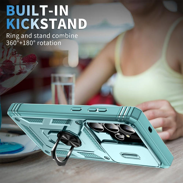 For Samsung Galaxy S25 Ultra 5G Sliding Camshield TPU Hybrid PC Phone Case with Holder(Green)