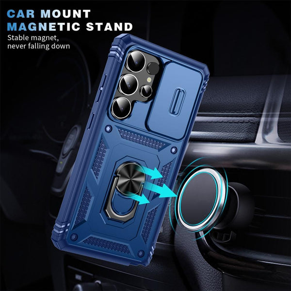 For Samsung Galaxy S25 Ultra 5G Sliding Camshield TPU Hybrid PC Phone Case with Holder(Navy Blue)