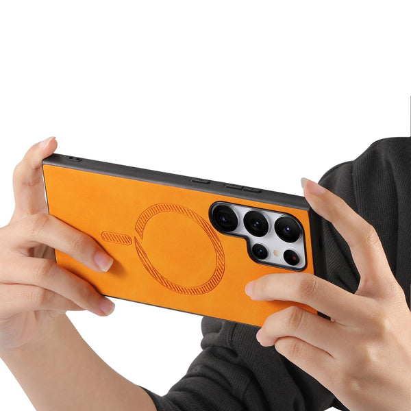 For Samsung Galaxy S25 Ultra 5G Solid Color Retro Magsafe PU Back Cover Phone Case(Yellow)