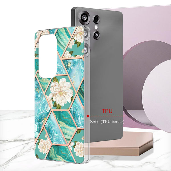 For Samsung Galaxy S25 Ultra 5G Splicing Marble Flower IMD TPU Phone Case(Blue Flower)