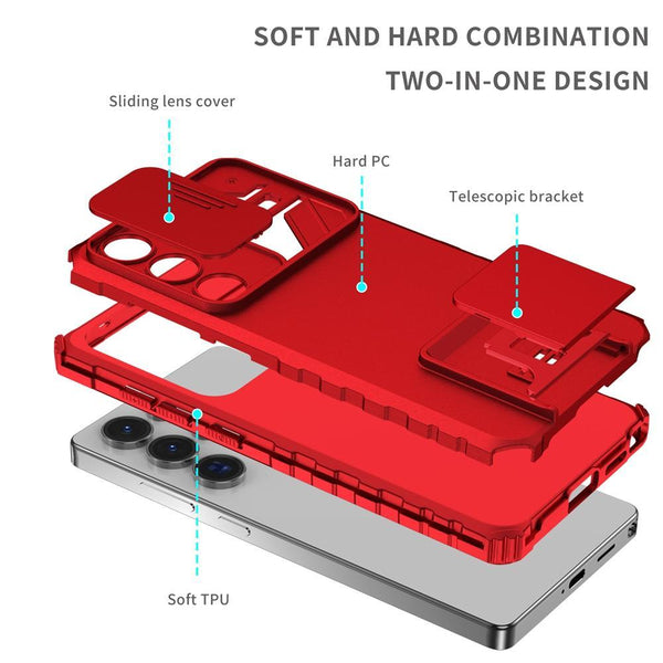 For Samsung Galaxy S25 Ultra 5G Stereoscopic Holder Sliding Camshield Phone Case(Red)