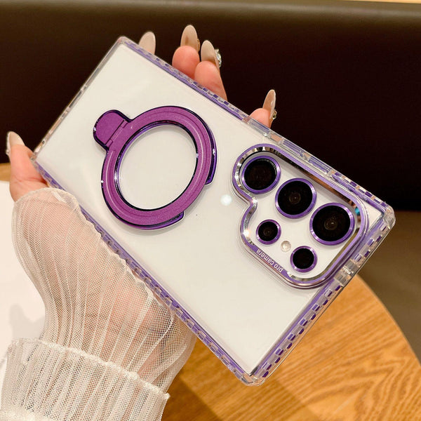 For Samsung Galaxy S25 Ultra 5G Transparent MagSafe Holder Phone Case with Lens Film(Purple)