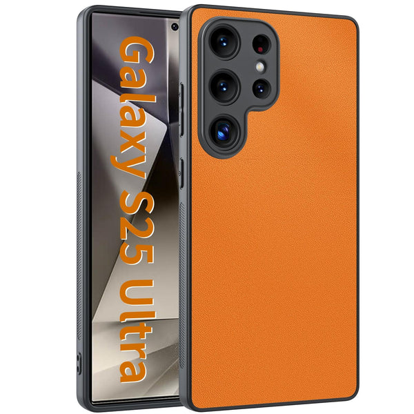 For Samsung Galaxy S25 Ultra 5G Ultra-thin Plain Skin Leather Phone Case(Orange)
