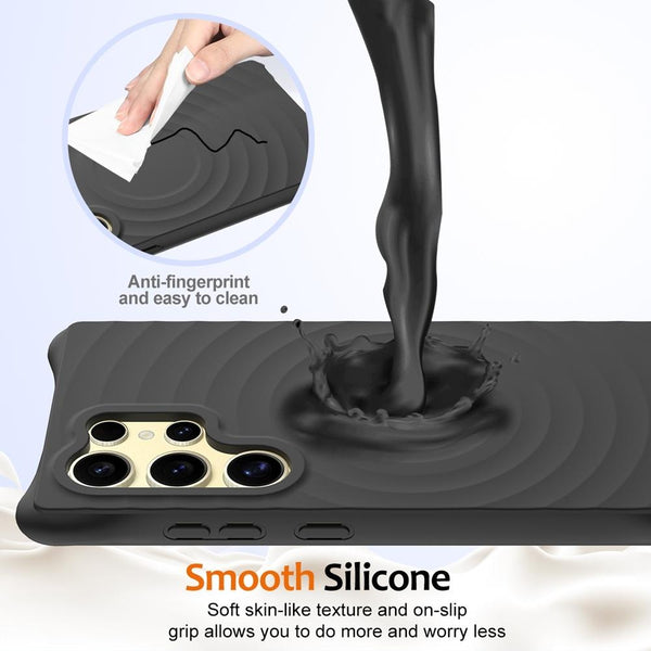 For Samsung Galaxy S25 Ultra 5G Wave Texture MagSafe Magnetic Liquid Silicone Phone Case(Black)