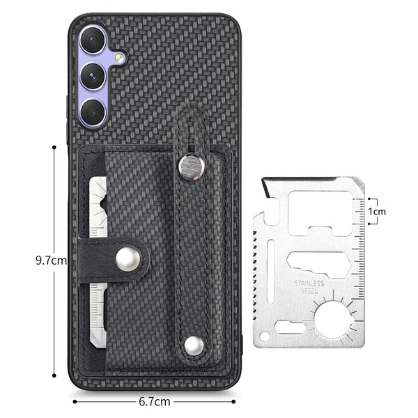 For Samsung Galaxy S25 Ultra 5G Wristband Kickstand Wallet Back Phone Case with Tool Knife(Black)