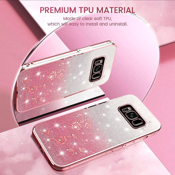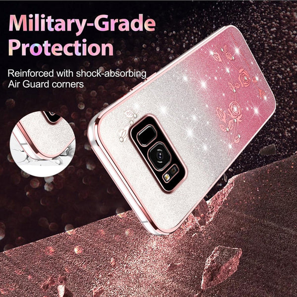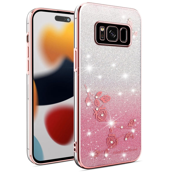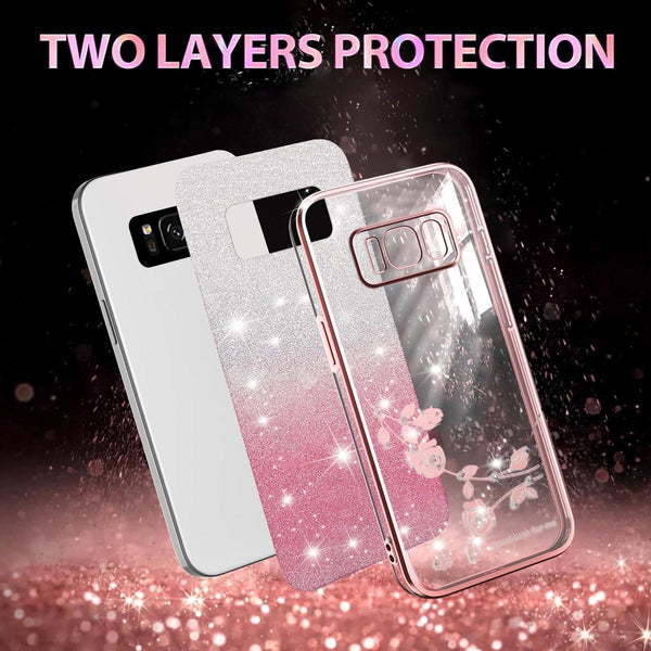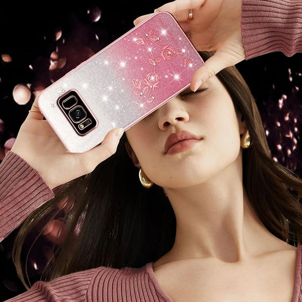 For Samsung Galaxy S8 Gradient Glitter Flower All-inclusive Phone Case(Pink)