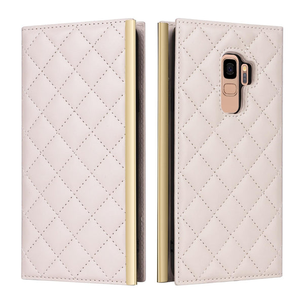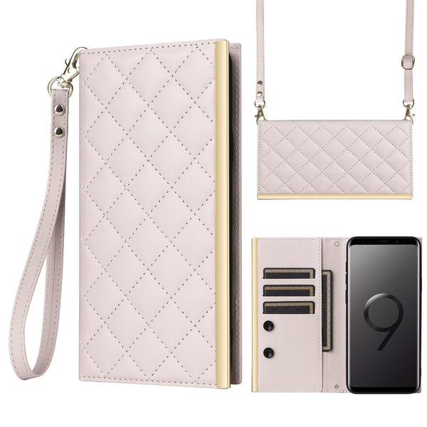 For Samsung Galaxy S9 Crossbody Rhombic Sucker Leather Phone Case(White)