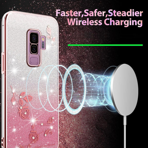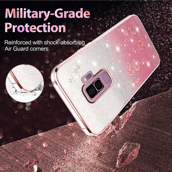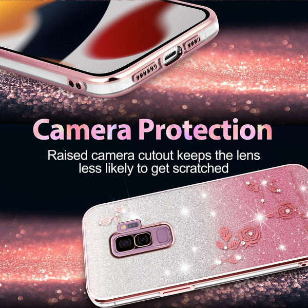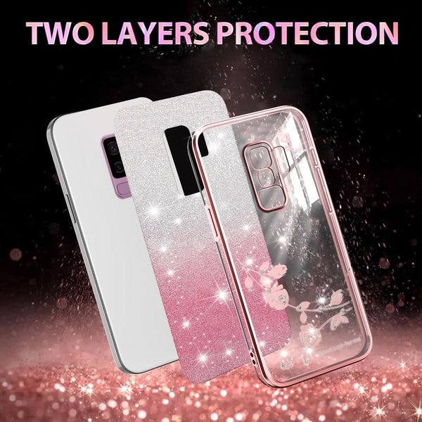 For Samsung Galaxy S9+ Gradient Glitter Flower All-inclusive Phone Case(Pink)