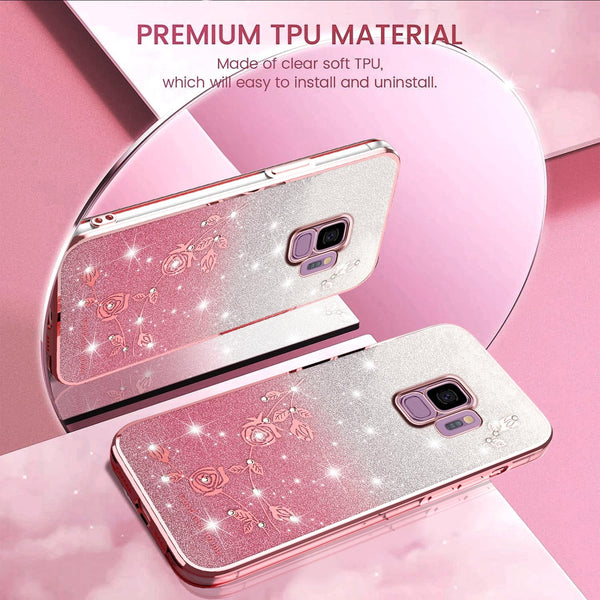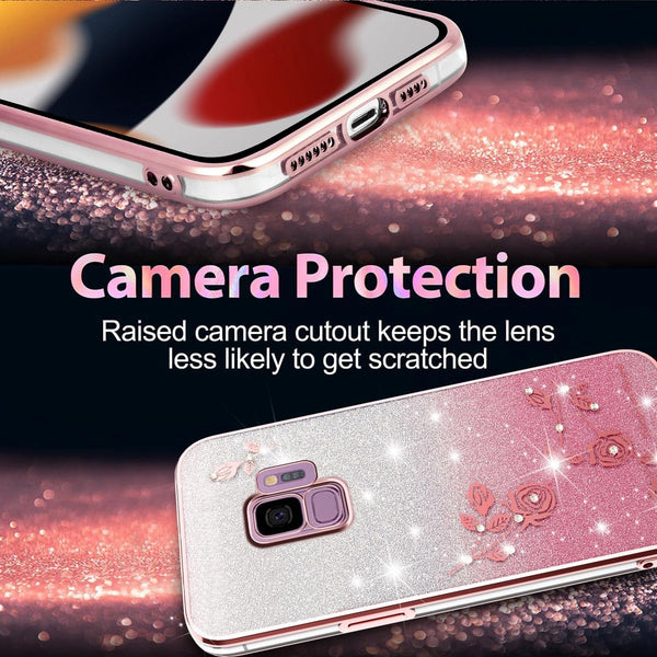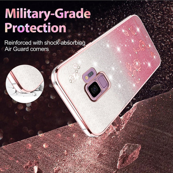 For Samsung Galaxy S9 Gradient Glitter Flower All-inclusive Phone Case(Pink)