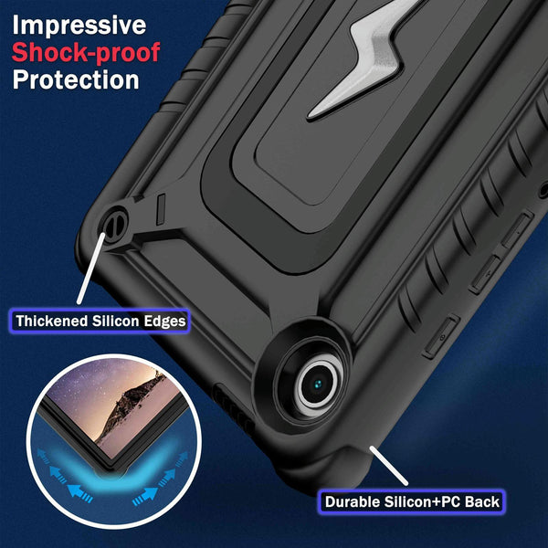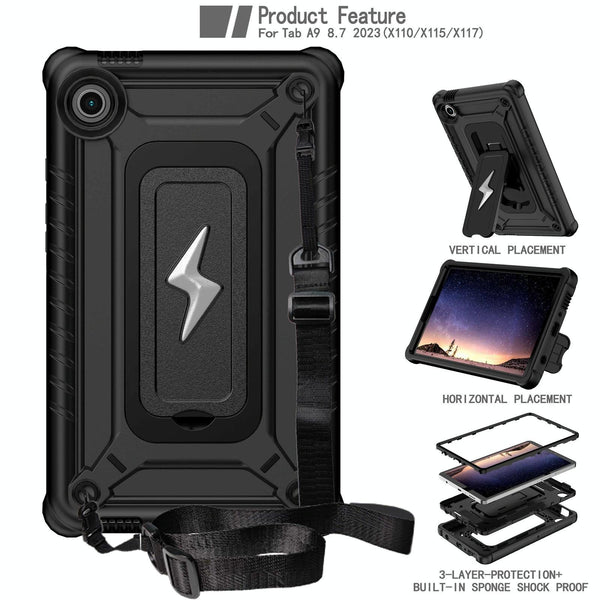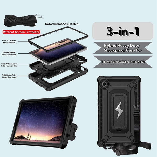 For Samsung Galaxy Tab A9 Armor Bolt Shape Holder Silicone Hybrid PC Tablet Case(Black)