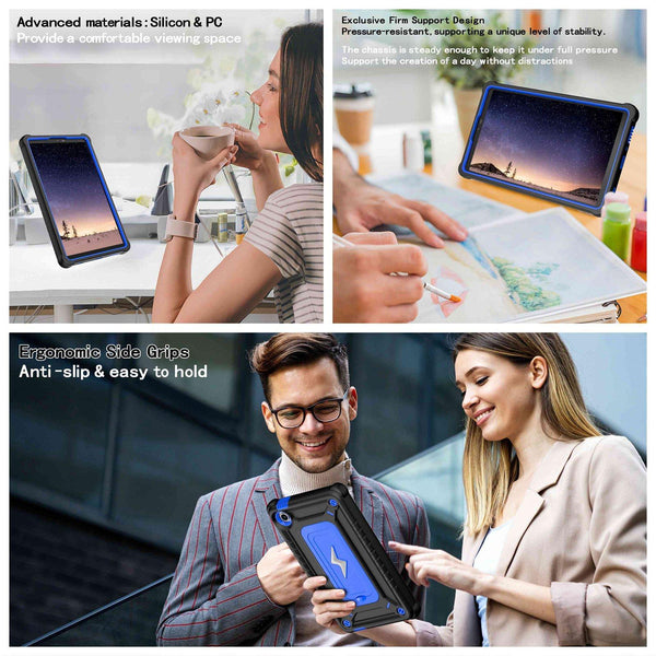 For Samsung Galaxy Tab A9 Armor Bolt Shape Holder Silicone Hybrid PC Tablet Case(Black Blue)