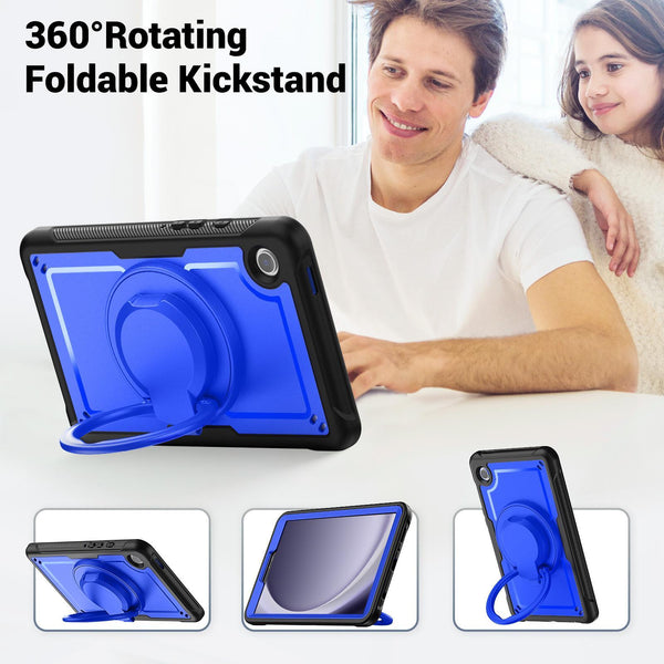 For Samsung Galaxy Tab A9 Honeycomb Hybrid Tablet Case with Handle Holder & Strap(Dark Blue)