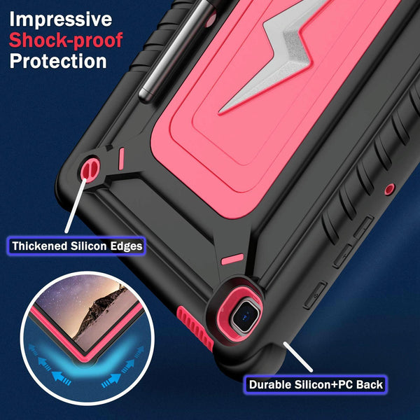 For Samsung Galaxy Tab S6 Lite 2020 / 2024 Armor Bolt Shape Holder Silicone Hybrid PC Tablet Case(Black Rose Red)