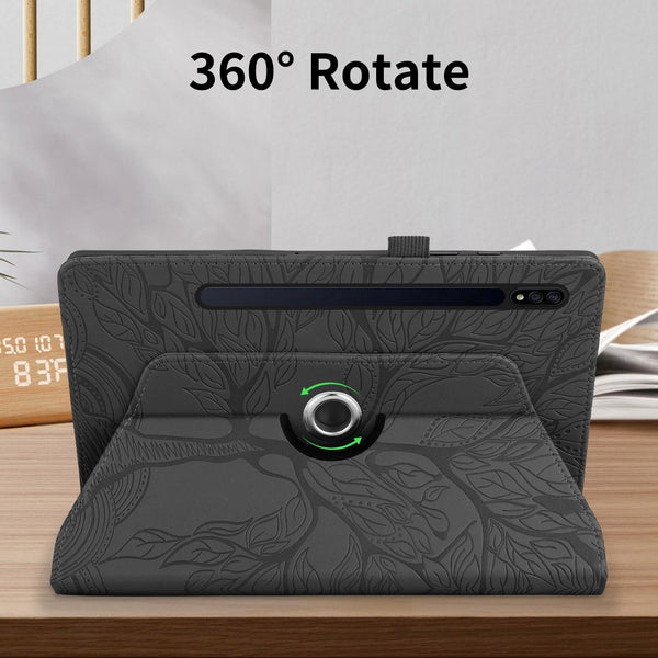 For Samsung Galaxy Tab S9 / S9 FE Tree Life Embossed Rotation Leather Tablet Case(Black)