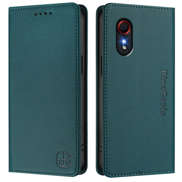 For Samsung Galaxy XCover 5 RC01 Dual-Folded Magnetic Suction RFID Leather Phone Case(Dark Green)