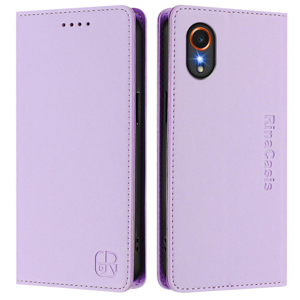 For Samsung Galaxy XCover 7 5G Global RC01 Dual-Folded Magnetic Suction RFID Leather Phone Case(Light Purple)