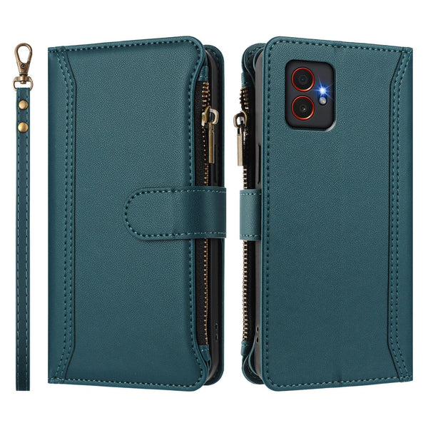 For Samsung Galaxy XCover 7 Pro Magnetic Closure Nine Card Slots Zipper Leather Case with Hand Strap(Dark Green)