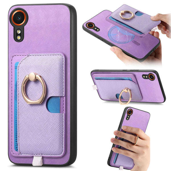 For Samsung Galaxy XCover 7 Retro Cross Leather Ring Side Insert Card Bag MagSafe Phone Case(Purple)