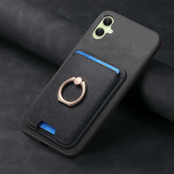 For Samsung Galaxy XCover 7 Retro Cross Leather Ring Vertical Insert Card Bag MagSafe Phone Case(Black)