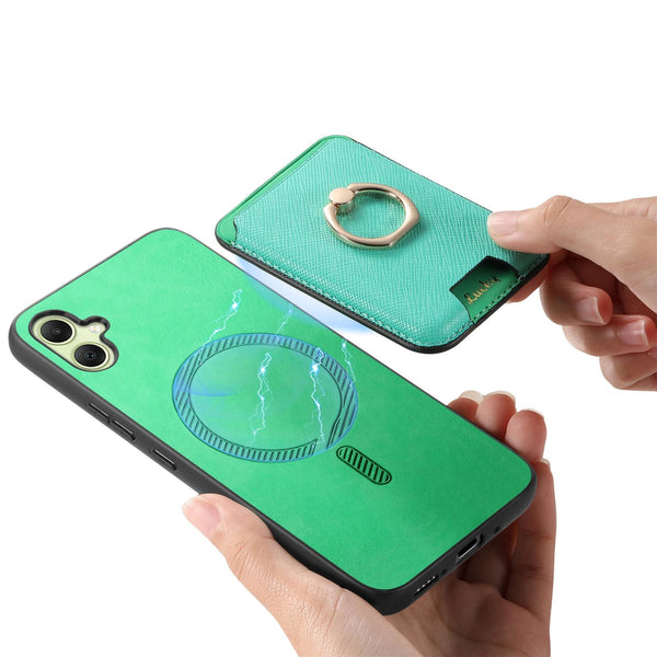 For Samsung Galaxy XCover 7 Retro Cross Leather Ring Vertical Insert Card Bag MagSafe Phone Case(Green)