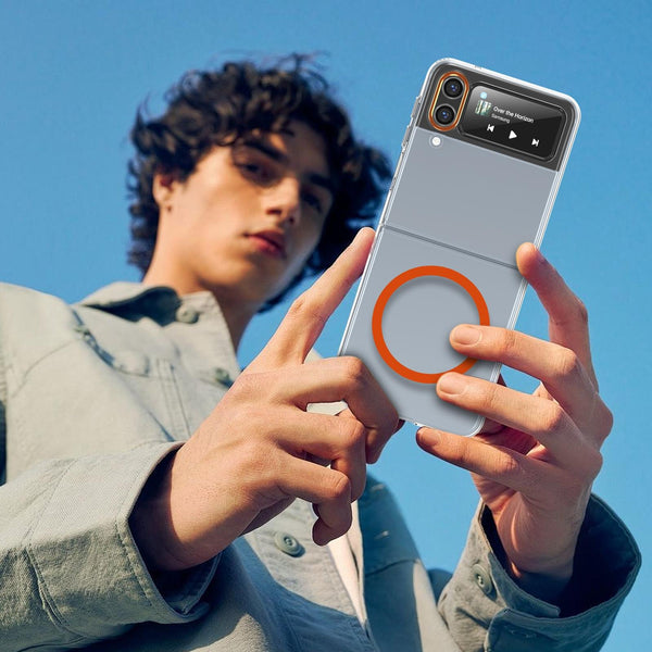For Samsung Galaxy Z Flip3 5G lce Folding Series MagSafe Integrated Clear PC Phone Case(Orange)