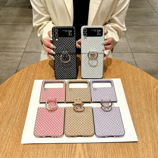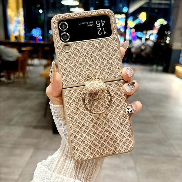 For Samsung Galaxy Z Flip4 5G Sparkling Diamond Rhombus PC Phone Case with Ring(Gold)