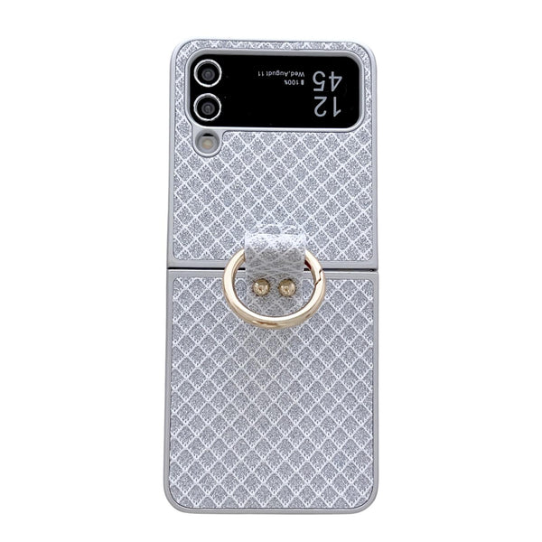 For Samsung Galaxy Z Flip4 5G Sparkling Diamond Rhombus PC Phone Case with Ring(Silver)