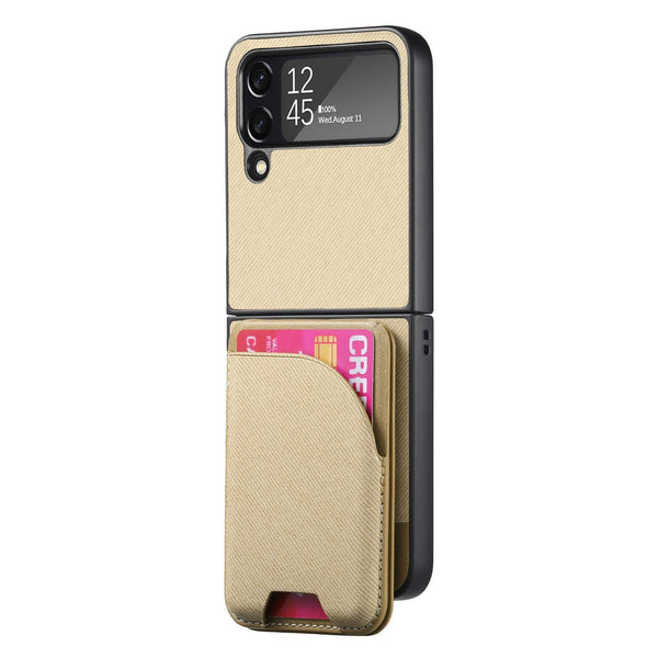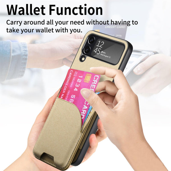 For Samsung Galaxy Z Flip4 Twill Fabric Leather Skin Card Bag Magnetic Back Phone Case(Khaki)