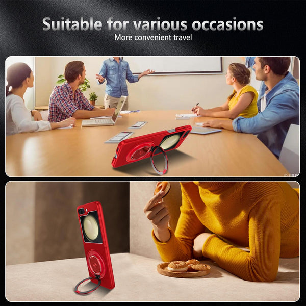 For Samsung Galaxy Z Flip5 360 Rotation Ring Holder MagSafe Shockproof PC Phone Case(Red)