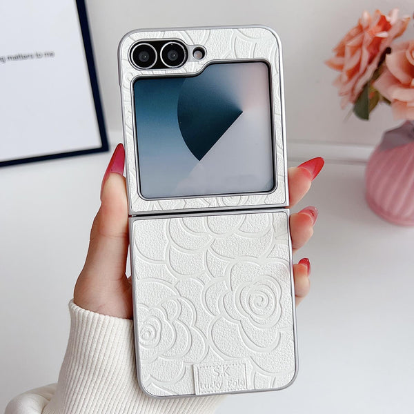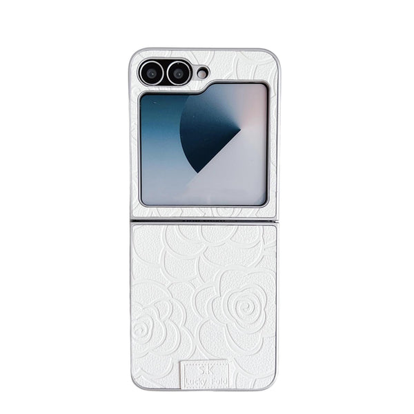 For Samsung Galaxy Z Flip5 5G Camellia Plaid Fabric DIY PC Phone Case(White)