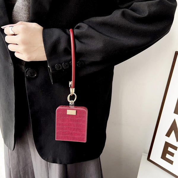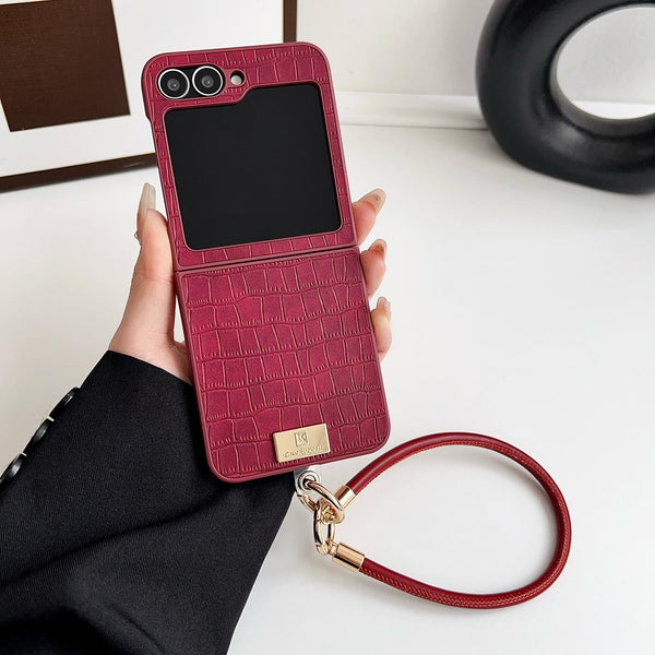 For Samsung Galaxy Z Flip5 Crocodile Texture TPU Phone Case With Strap(Red)