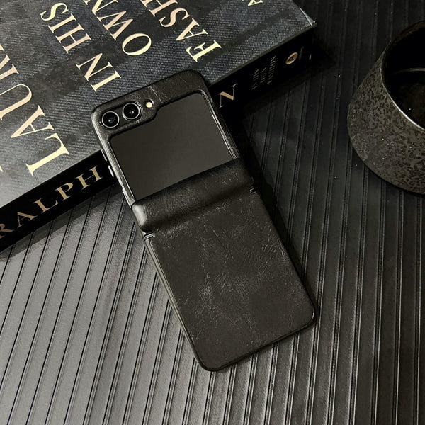 For Samsung Galaxy Z Flip5 Integrated Magnetic Axis Crazy Horse Texture Phone Case(Black)