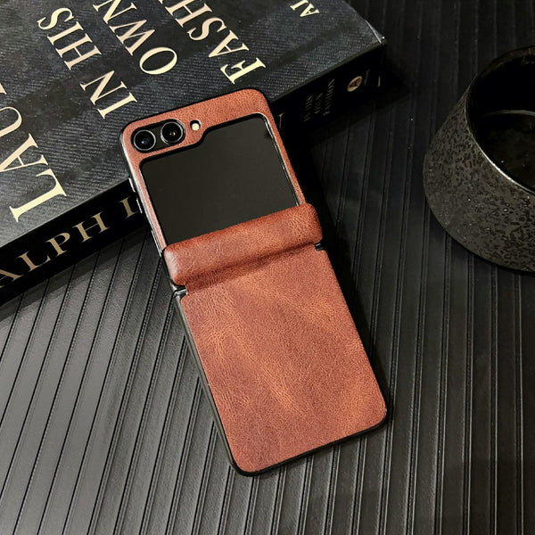 For Samsung Galaxy Z Flip5 Integrated Magnetic Axis Crazy Horse Texture Phone Case(Brown)