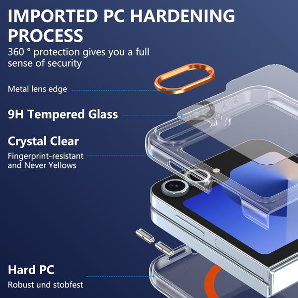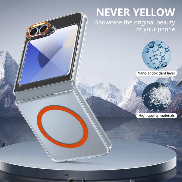 For Samsung Galaxy Z Flip5 lce Folding Series MagSafe Integrated Clear PC Phone Case(Orange)