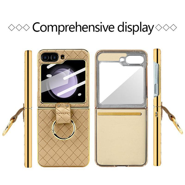 For Samsung Galaxy Z Flip5 VIETAO Woven Leather Metal Ring Phone Case(Black)