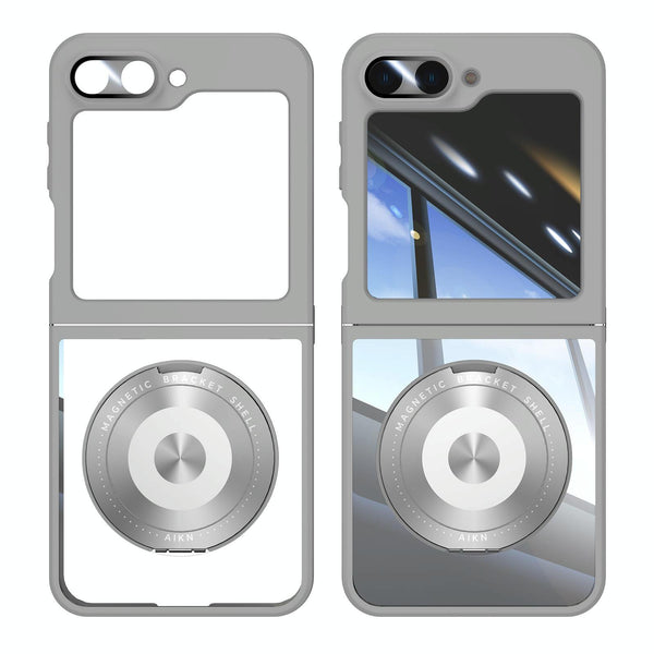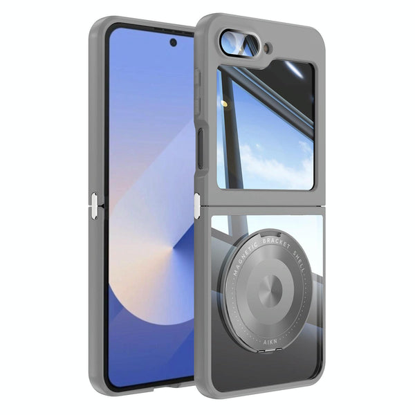 For Samsung Galaxy Z Flip6 360 Holder MagSafe Acrylic Hybrid TPU Phone Case(Grey)