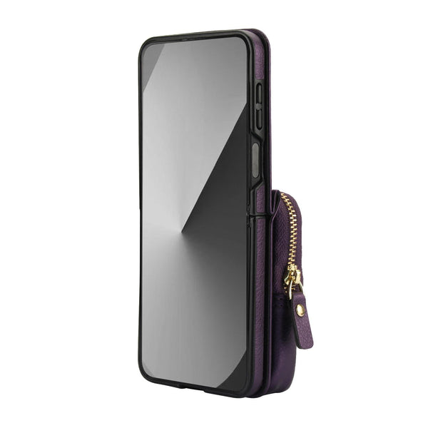 For Samsung Galaxy Z Flip6 AwQuer Crossbody Zipper Wallet Bag Litchi Leather Phone Case(Dark Purple)