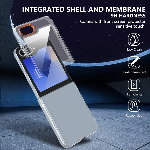 For Samsung Galaxy Z Flip6 lce Folding Series Integrated Clear PC Phone Case(Orange)