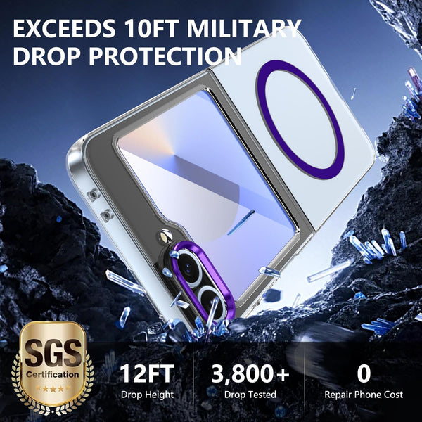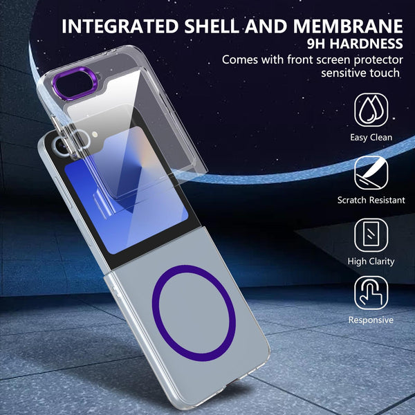 For Samsung Galaxy Z Flip6 lce Folding Series MagSafe Integrated Clear PC Phone Case(Purple)