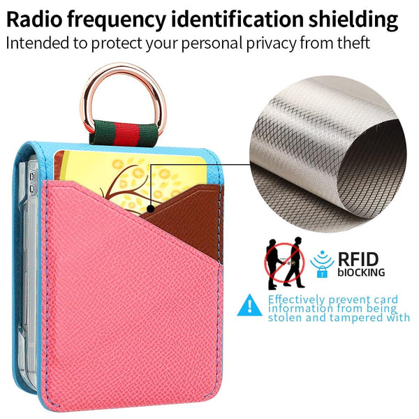 For Samsung Galaxy Z Flip6 VIETAO Metal Ring Card Slot PU Phone Case(Blue Pink)