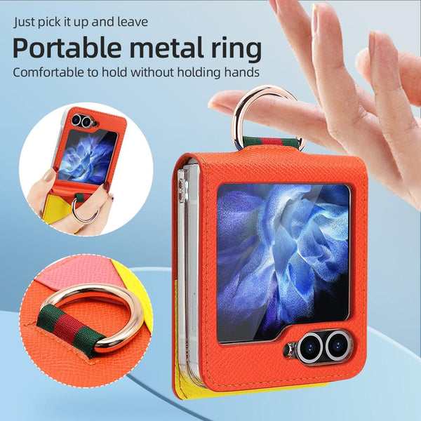 For Samsung Galaxy Z Flip6 VIETAO Metal Ring Card Slot PU Phone Case(Orange Yellow)