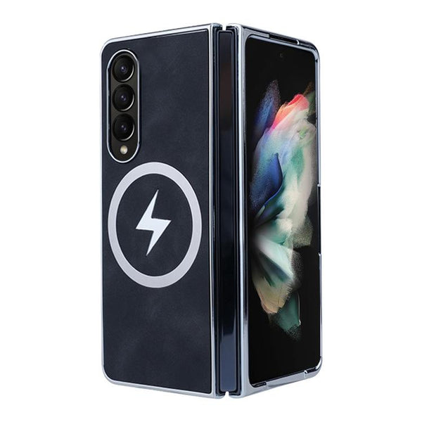 For Samsung Galaxy Z Fold3 5G Electroplating Lightning MagSafe Fold Full Coverage Phone Case(Black)