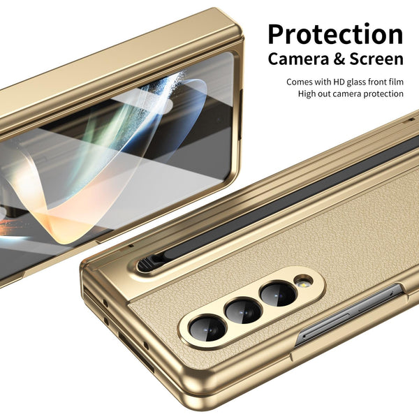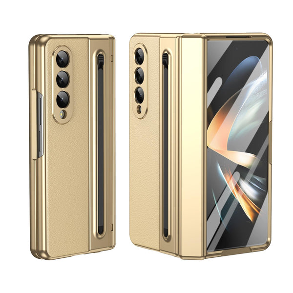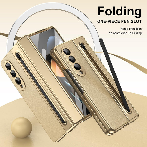 For Samsung Galaxy Z Fold3 5G Integrated PC + PU Phone Case with Pen / Pen Box(Gold)