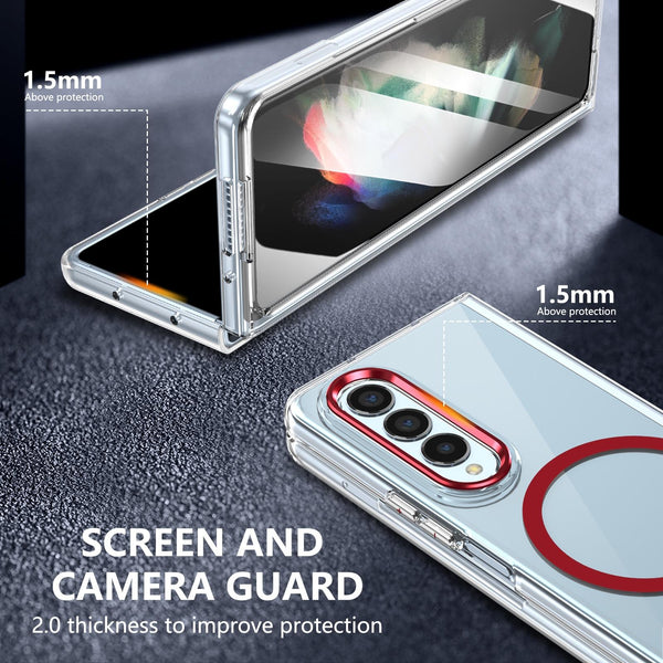 For Samsung Galaxy Z Fold3 5G lce Folding Series MagSafe Integrated Clear PC Phone Case(Red)