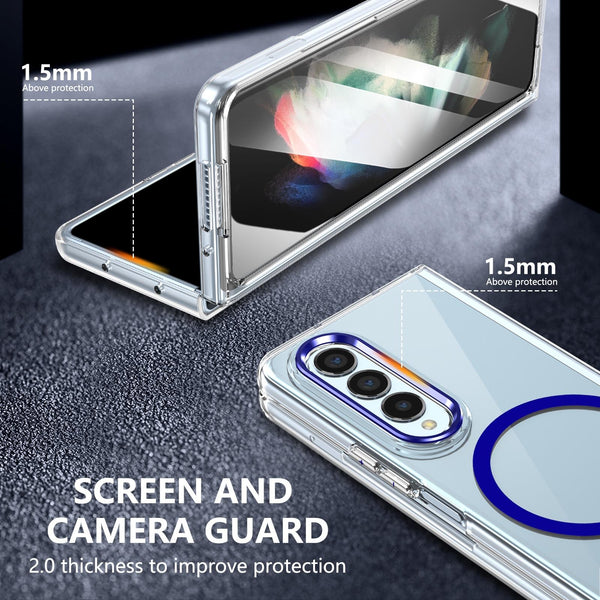 For Samsung Galaxy Z Fold3 5G lce Folding Series MagSafe Integrated Clear PC Phone Case(Royal Blue)