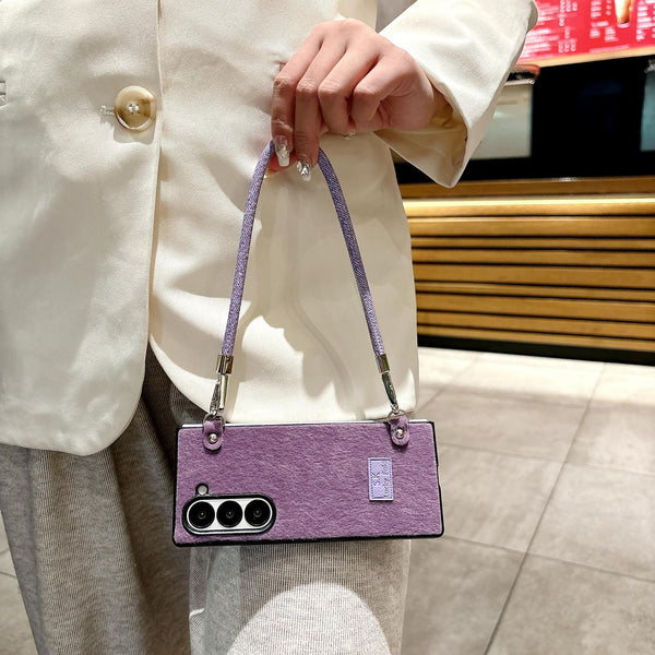 For Samsung Galaxy Z Fold4 5G Comfortable Short Plush Full Coverage Phone Case with Wrist Strap(Purple)