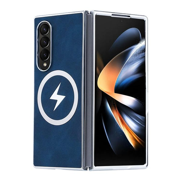 For Samsung Galaxy Z Fold4 Electroplating Lightning MagSafe Fold Full Coverage Phone Case(Blue)