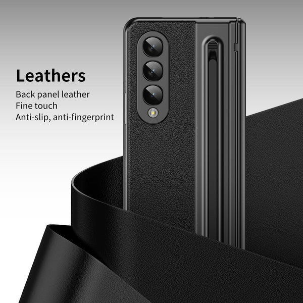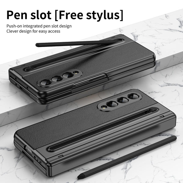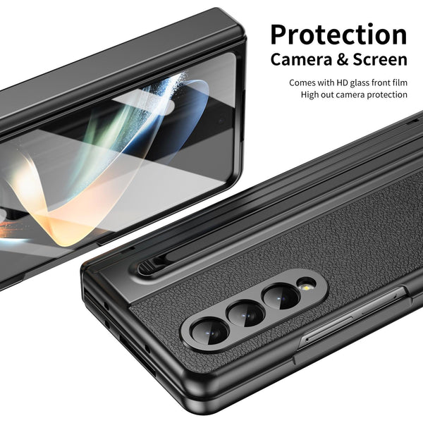For Samsung Galaxy Z Fold4 Integrated PC + PU Phone Case with Pen / Pen Box(Black)