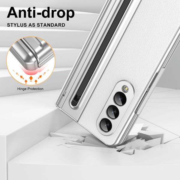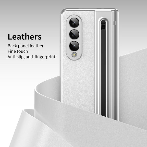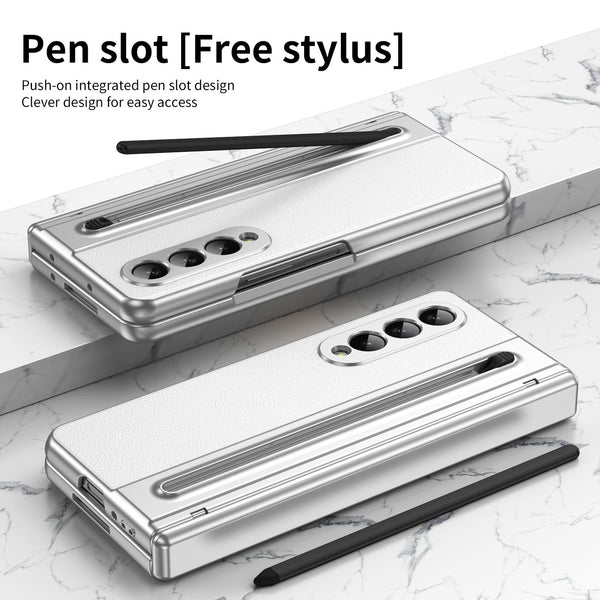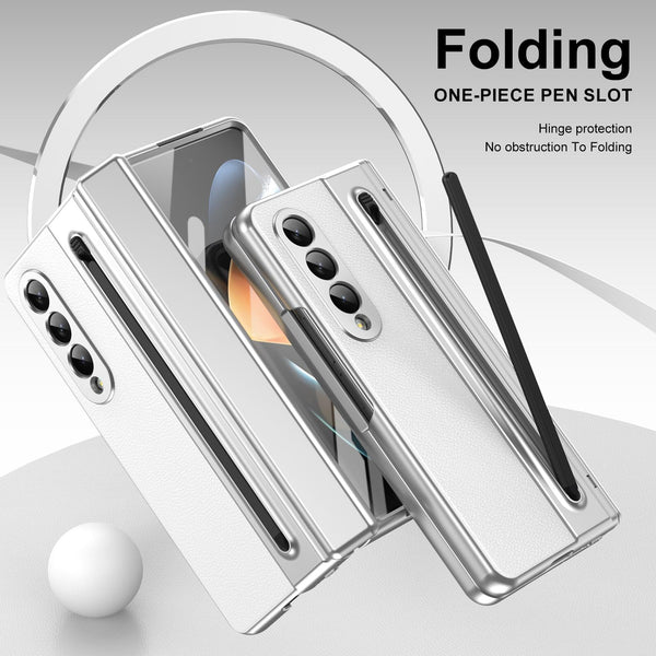 For Samsung Galaxy Z Fold4 Integrated PC + PU Phone Case with Pen / Pen Box(White)