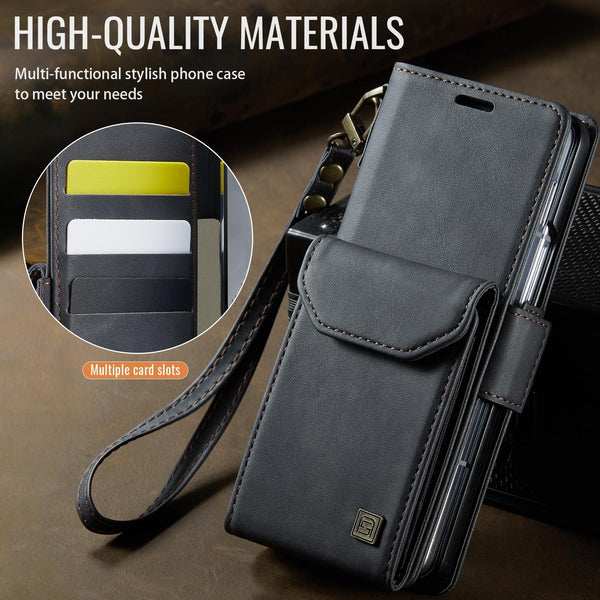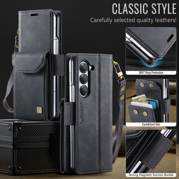 For Samsung Galaxy Z Fold5 5G AutSpace A23 Organ Card Bag Magnetic RFID PU Phone Case(Black)